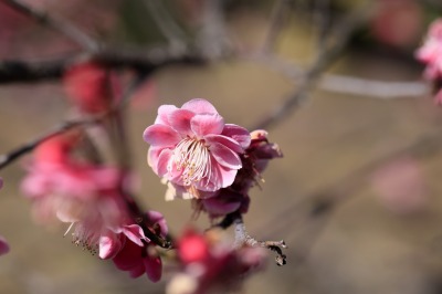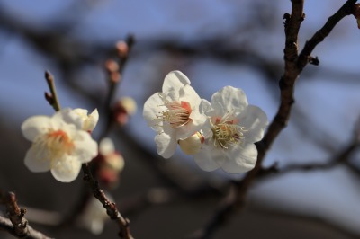 幸い好天で、梅はよく咲いていた。冬至梅はさすがに終わりかけていたが、早咲きの鹿児島紅梅も盛りで、遅咲きの品種は咲き始めと、多くの