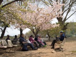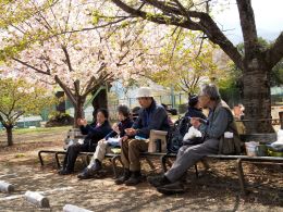 | 桜満開の穴山公民館にて | ||