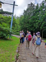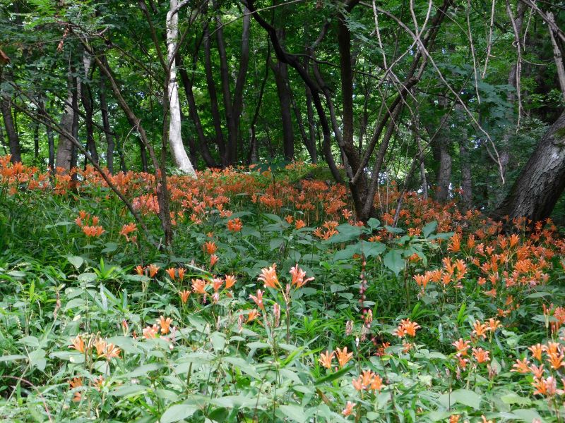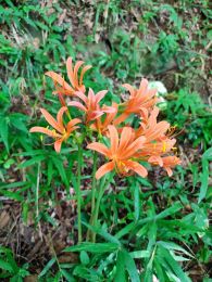 朝方、山沿いは雨が降ったようで、参加を見合わせる連絡もあったが、実施。長坂総合支所に14名が集まった。 4台に分乗してグリーンヒル八ヶ岳へ。 千葉さんの先導でキツネノカミソリ群生地に向かう。途中にも数株ずつのキツネノカミソリが見られ、自生地の広がりが見られる。斜面いっぱいに広がる群生地では歓声が上がる。 昨年までフクロウの巣箱のため近づけなかったもう一つの群生地も見事だった。ササを刈るなど手を入れれば、株数も増えてさらに立派な群生地となることだろう。 ずっと曇りだったが最後に晴。そしたら霧雨。キツネノカミソリ観察会の締めくくりは「狐の嫁入り」と誰かが言った。 |