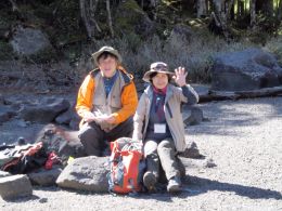 | 亀甲池で昼食 | 亀甲池で昼食 | 昼食も終え、さあ、大河原峠へ |