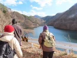 道の駅南きよさとに集合し、車に分乗して清里湖へ。ダムの標高は906.5m。 鳥の案内板の冬鳥のところにジョウビタキの記載があるが、今では八ヶ岳域では「留鳥」であること 湖面にはカワウ、堰堤と湖面の境にはセグロセキレイ。堰堤にはサギ類の白い糞。サギは飛び立つ前に身体を軽くするため糞をするそうで、糞と尿は一緒らしい。 林縁にはつる植物など大繁茂したものが枯草となっている。そこにカヤクグリがいるはずと近づくと、カシラダカ、ジョウビタキも飛び出した。 カケスは姿よりも鳴き声で所在が確認。 湖面の見えるところで、カイツブリ、カルガモ、マガモ。 湖の最奥部へオシドリを見に。人の気配でさらに奥へと移動してしまうが、いくつかフィールドスコープに入ってくれた。 同じ道を引き返して往復4q。とても暖かいポカポカ陽気で、気持ちよく歩けた 観察会だった。 |