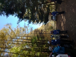 晴天で穏やかな小春日和となりました。暖かい日が続いているため紅葉も10日程度遅れているそうです。 9時にこぶちざわ道の駅に集合し、乗合で棒道火の見櫓後まで移動後、 途中開けた場所には大木となったフジの群生があり、足元にはアケボノスミレの葉、エイザンスミレとヒゴスミレのハーフと思われる葉を確認しました 11時半、火の見櫓で井澤さんから「晩秋から冬の樹木観察の楽しみ」についての説明を受けた後、再度乗合でこぶちざわ道の駅にもどり解散となりました |
