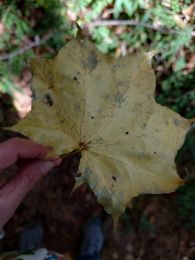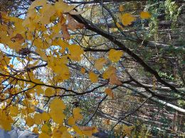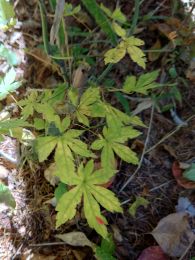 黄色に色づいたダンコウバイ | 赤く色づいたイロハモミジ | |