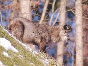 コメント: 南麓では微増傾向(?)にあり、.主に横断道の擁壁上で、冬季に見かけます。カモシカはなわばり意識が強いのか、見かける個体はほとんど同個体です。写真上は吐龍の滝付近で、下は横断道1330mの道路標識付近で撮影したものです。カモシカ撮影は、相手があまり動かないため、撮り易い動物です。 |