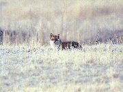 コメント:南麓全域(一部住宅地は除く)に生息しています。写真上は県営牧場の草地で1月に、下の親子は長坂町の田圃で5月に、それぞれ撮影しました。キツネは警戒心が強いと言われていますが、こちらが車中にいる限り、撮影に協力してくれます。ただし最近では、南麓は住宅建築ラッシュらしく、キツネが巣穴を掘るに適した場所が、住宅地になりつつあります。 |