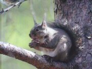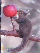 コメント:森のやんちゃ君と形容しても良いほど、可愛らしい動物です。山麓の全域の森に住んでいましたが、近年では建築ラッシュのあおりを受けて、その生息地が狭まりつつあります。写真上は小淵沢町で1月に、中は大泉村の野鳥食堂(餌台)のリンゴスターで1月に、下は宙を飛ぶ個体を大泉町で2月に、それぞれ撮影しました。 |
