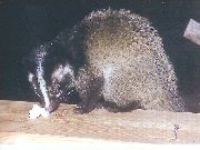 コメント:可愛らしい顔をしていますが、その性質は狂暴とのことです。行動はほとんど夜間ですが、厳寒期には餌不足から日中でも姿を見せることがあります。写真は長坂町の人家に姿を見せた個体を2月に撮影しましたが、熟柿をおいしそうに食べていました。 |