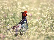 牧草地が多くある八ヶ岳高原は、キジにとって絶好の生息地ですので数多くの姿を見ることが出来ます。日本の国鳥であるにもかかわらず、代表的な狩猟鳥でハンターに狙われている為に警戒心が強いのですが、ほとんど地上で生活をする習性から見つけ易い鳥です。これからの季節にはメスが沢山のヒナを連れた愛らしい姿を見ることが出来ます。