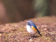 日本人は青い鳥が大好きな国民のようです。カワセミ、オオルリ、コルリ、そしてルリビタキのファンが多くいらっしゃいます。幸せの青い鳥と言われるルリビタキは、可愛らしい容姿とつぶらな瞳から、特に人気です。亜高山帯近くの森で繁殖をするので、薄暗い針葉樹林内で行動していて”鳴き声はすれども姿は見えず”と言う具合。美しいものを見るには苦労します。
